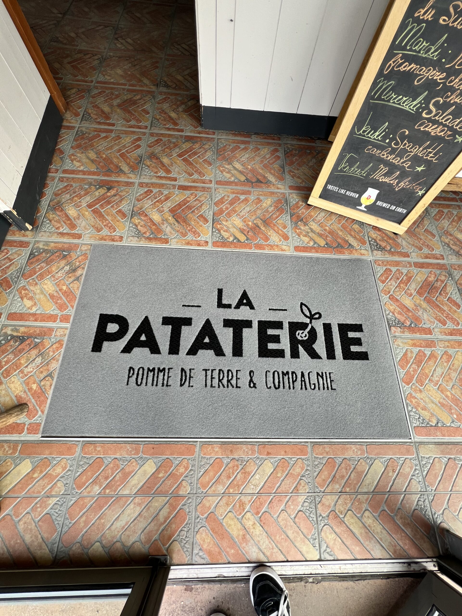 Superbe tapis pour le restaurant la PATATERIE de Langres. Le tapis est découpé directement aux dimensions pour s’intégrer parfaitement dans l’espace prévu à cet effet.